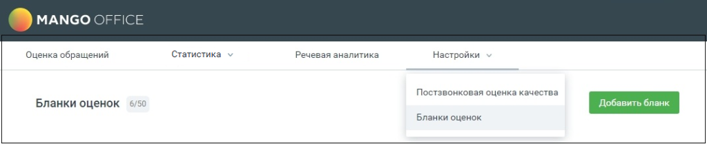 • при отключении услуги «Речевая аналитика» в уже оцененных бланках оценка остается, правила оценки в бланках становятся недоступны для изменения;