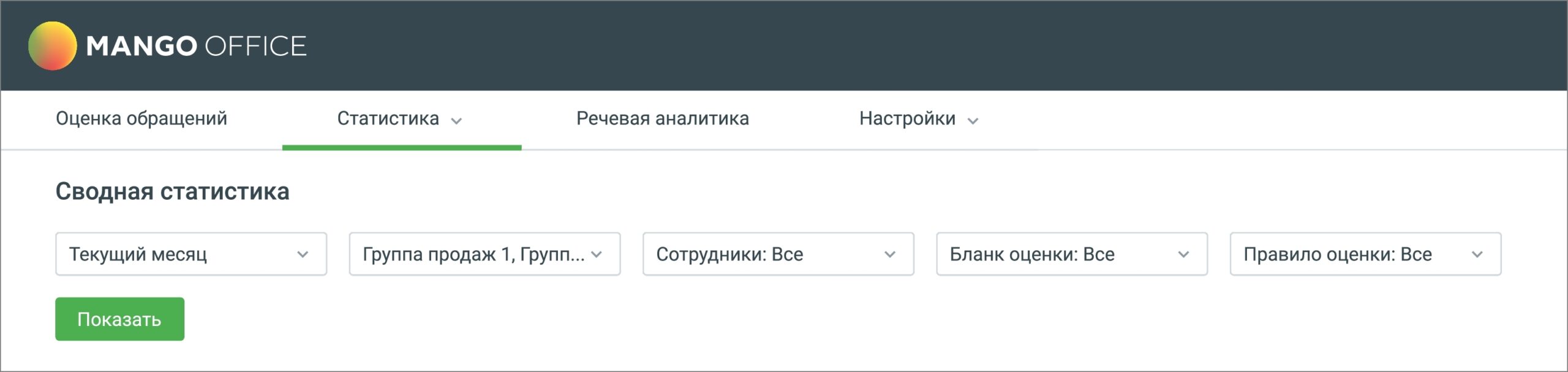 В разделе отображаются таблицы сводной статистики оценок сотрудников ВАТС клиентами и контролерами в соответствии с заданными параметрами фильтрации.